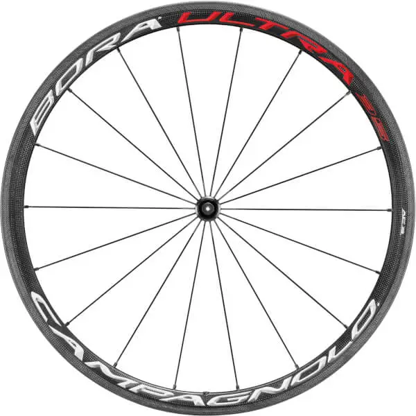 In answer to great request from Nairo Quintana and the other champions using Campagnolo, the Bora Ultra 35 is the best wheel out there in terms of performance uphill and on mixed routes. Its 35 mm profile makes it an extremely light carbon wheel that however guarantees remarkable aerodynamic benefits. Campagnolo offers the Bora Ultra 35 in both clincher and tubular versions, extending the versatility of what is described as the best carbon wheel on the market also to cyclists who prefer the easy management of clinchers. But this is not all as innovative AC3 (All Conditions Carbon Control) Technology means maximum safety when braking in any condition, guaranteeing shorter stopping distances and excellent modularity of braking power. Thanks to its wide, aerodynamic profile, differentiated hub diameter and CULT bearings, all cyclists can now enjoy the same performance Campagnolo guarantees its Pro-Tour champions. Features: No compromise Its 35 mm carbon profile guarantees maximum lightness and aerodynamics Its carbon hubs reduce weight for good lateral stiffness Designed for best results uphill and on the flat Lightweight and smooth CULT bearings guarantee up to nine times the smoothness of standard solutions Its carbon rim and hubs ensure good stiffness and extremely low weight Its aerodynamic profile spokes ensure maximum air penetration Easy maintenance Also available in a clincher version, in Bright Label and Dark Label colourways Its CULT bearings are designed to zero oxidation and preserve performance over time Its exclusive G3 spokes ensure better balancing of the traction force on the wheel, drastically reducing all its stress Specifications: Spokes: Number of spokes: 18 front and 21 (G3) rear RDB – Rim Dynamic Balance Bladed aerodynamic spokes Stainless steel spokes Ultralinear/DRSC geometry Aluminium nipples Compatibility: Campagnolo FH Body 9/10/11/12 FH Body HG 9/10/11 Hub: Carbon hub USB bearings Hub edge: 100mm (front), 130mm (rear) Oversize flange Cup-and-cone bearing system Rim: Profile height: 35 mm Rim section (height/width): 35mm/24,2mm Rim material: Carbon Graphic colours: Bright Label and Dark Label Tyres: Tubular Assembly The Bora Bora Ultra 35 wheel is entirely hand-assembled by a specialised Campagnolo® technician and is checked in every tiny detail with electronic instrumentation. This ensures maximum performance and reliability for all Campagnolo® wheels. Comes With: Special brake pad kit for carbon wheels (red compound): 40% better braking performance in wet conditions and 20% in dry New Quick Release wheels with totally redesigned aerodynamic profile, lighter and with shiny finish Valve extender User manual
