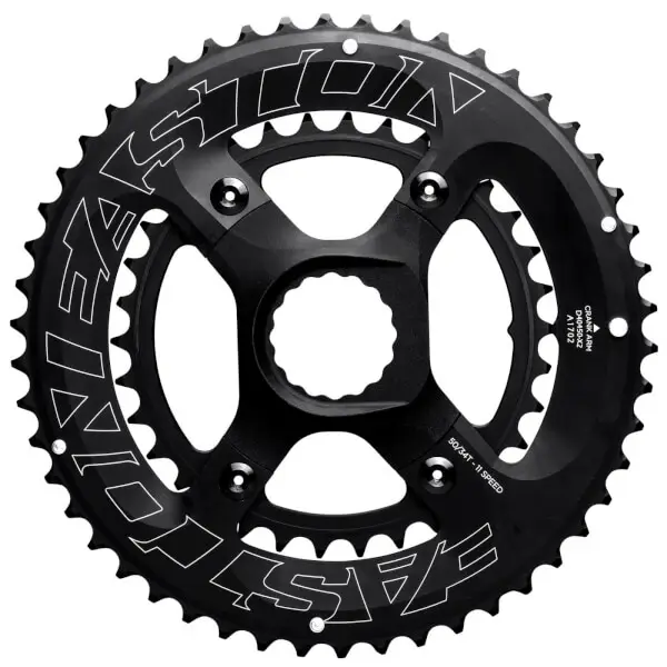 Building of a strong shifting ring technology platform we went through seven rounds of revisions and refinement with the help of rigorous lab testing and on bike field and race testing with Silber Pro Cycling. The final product is a thing of beauty. Heavily machined for weight savings and excellent stiffness, the Easton shift rings have excellent shifting performance thanks to extensive optimized shift ramps and pins. Utilizing the versatility of the CINCH system, Easton offers spiders with a 45mm chainline optimized modern road bike hub spacing. The EC90 SL crankset is your Easton Advantage. Specifications: Finish: Matte Black Anno Ring Configurations: 53/39, 52/36, 50/34 Removable Spider Weight: 255G 53/39, 243G 52/36, 227G 50/34 Weight Complete: 590G 172.5MM 52/36 W/O BB Chainline: 45MM Material: EA90 Aluminum