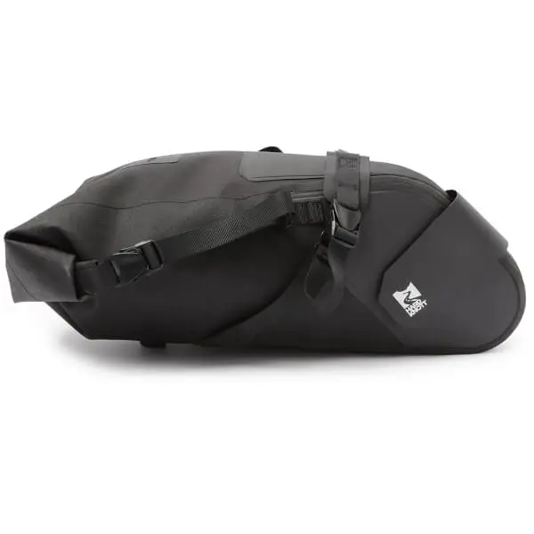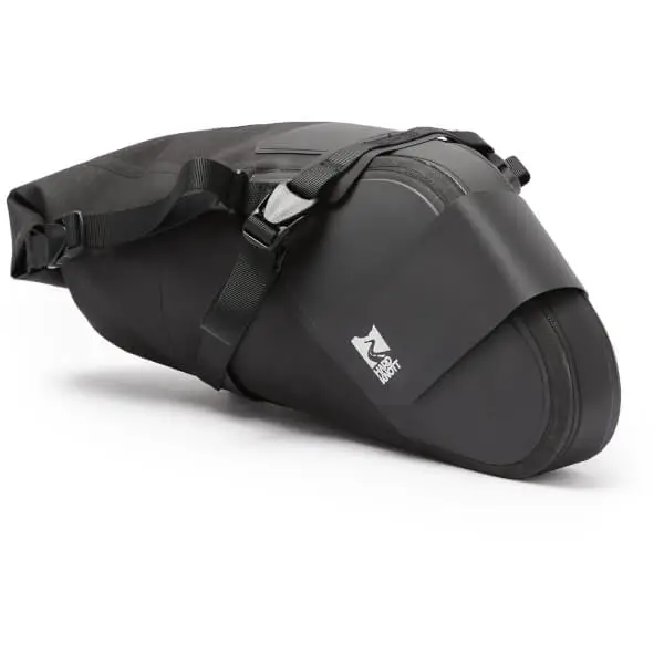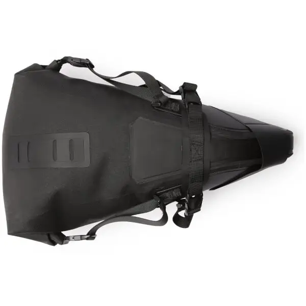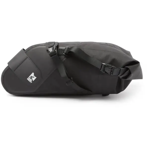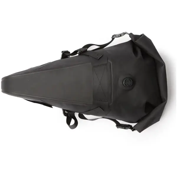 The Hardknott Adventure Saddle Pack is a lightweight and waterproof option that gives you the option of carrying essentials without the need for a rear pannier rack. Ideal for the long distance audax rider, gravel adventure cyclist or even the commute. Constructed using a waterproof and robust fabric the Adventure Saddle Pack with it’s roll top design has been designed to ensure that clothing and equipment can be carried in the worst of conditions, and with the addition of the air-purge valve, can be packed down as small as possible. With Hypalon reinforcement in key places such as against the seatpost, as well as on all Velcro, the Adventure Saddle Pack can be securely fastened to all types of bike, creating a stable and robust option for the most demanding of cyclist. Features: 7L Capacity Roll top fastening Air-purge valve Secure Velcro fastening