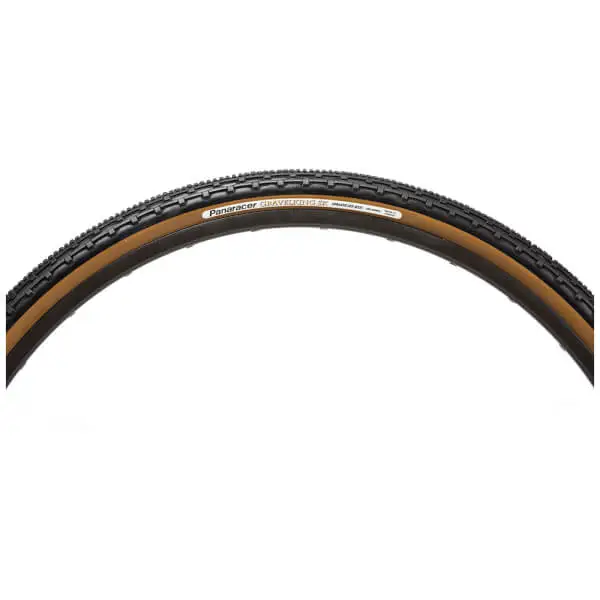 The Panaracer Gravel King SK tubeless-compatible tyre is arguably the ultimate all-round gravel tyre. Based around the ZSG rubber compound, Panaracer has balanced durability with low rolling resistance to produce a tyre that offers race-ready performance that lasts. Being both tubeless-ready and equipped with an Anti-Flat casing, this tyre provides a double defence against the worst cuts and abrasions, helping to keep you rolling over the roughest surfaces. Additionally, when set up tubeless, you can also run these tyres at much lower pressures too, for even greater comfort over rough stuff. Despite this all this protection, the Panaracer Gravel King still offers an incredibly supple ride quality thanks to AX-technology. Weighing just 380 grams in a 35c width, it’s easy to see why this tyre is a firm favourite at gravel races such as the Dirty Kanza. Tubeless tyre ZSG natural compound Anti-flat casing AX-Alpha cord Available in Black/Black or Black/Brown Weight: 320 grams – 700 x 32mm // 380 grams – 700 x 35mm // 420 grams – 700 x 38mm // 490 grams – 700 x 43mm // 570 grams – 700 x 50mm // 470 grams – 27.5 x 1.75 // 540 grams – 27.5 x 1.90 //