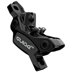 Guide RE is SRAM’s optimized braking solution for today’s exciting category of E-MTBs, capable of handling the higher average speeds, more intense use and increased mass due to the presence of the motor and battery. It combines SRAM’s proven Guide R lever assembly with a powerful 4-piston caliper derived from the gravity-focused Code brakes. Guide RE provides real, usable on-trail control-optimal power and modulation mean speed can be controlled in all terrain and in all situations, both uphill and downhill. Guide R lever assembly with proven Guide technologies Powerful 4 piston caliper derived from the Code gravity specific brakes Sintered pads for better pad life in intensive use MatchMaker™ X compatible Ambidextrous lever mount Tool-free reach adjust